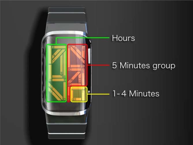 I like the shape of the ‘face’ and the strap matches well. I like the ‘bar’ concept for telling the time, but it’s not clear to me how the 12 hours are achieved. Is it by adding 11 and 1? I do think different colours would help and I agree than animation would be nice. I think a day and date feature would be good. I wonder if the face would be glass or plastic. I think some sort of scratch resistant glass would be good.