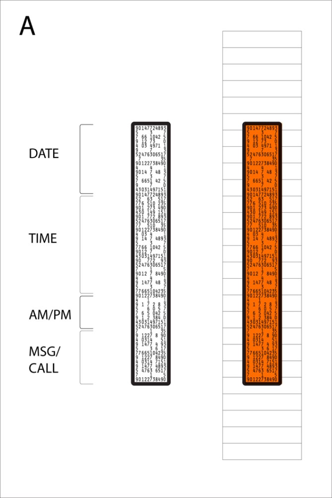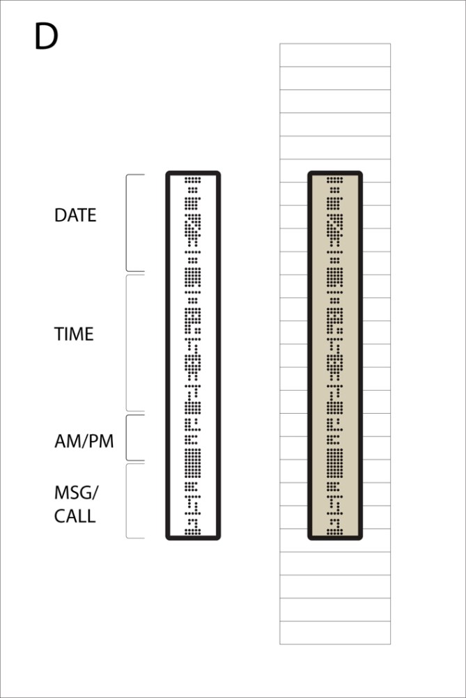 Design D: After seeing design A, I feel this one would be harder to read (because you would be looking at it sideways). But because everything is in a line, its kinda nice. I say this is the best, but ONLY if you add a scrolling feature (to display texts or caller ID’s).