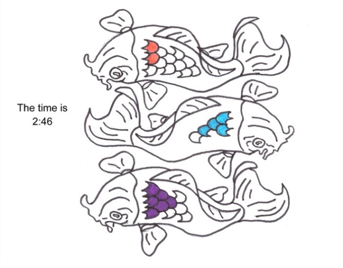 wow.. i love the idea. obviously this is a rough sketch, but the concept is solid. part of me would also like it if the fish were a sort of MC Escher pattern to fill the face instead of just the three, but awesome submission!