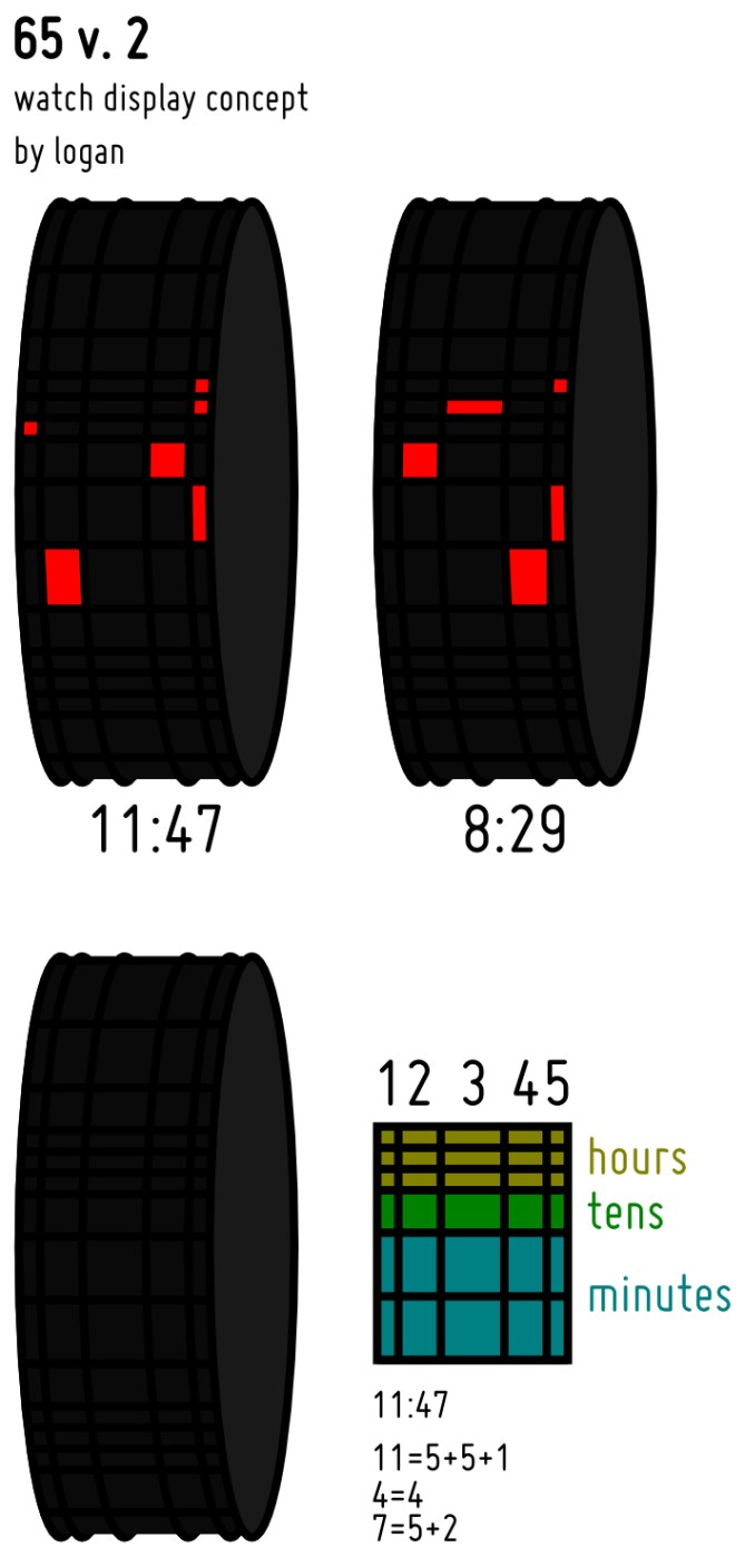 Thanks, Sam. Actually, I submitted a Mondrian-style watch to Tokyoflash, but they didn’t publish it. It used the classic Mondrian colors and told time in base-3 (trinary). Too much math, I guess.