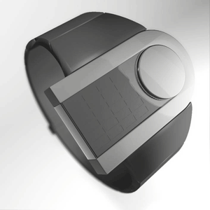 I designed a unique case shape in order to fit with this big single button on the front face. I made differents renderings with using metal and/or plastic for the button and the strap.