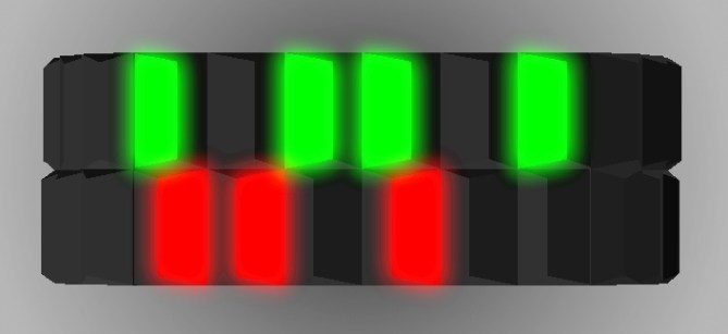 Time can be displayed either in binary mode (hours in red, minutes in green), or in 12-5-9 mode (show hours first, then tens of minutes, then single minutes). In binary mode, there is an option for 12-hour or 24-hour display, and, with the 24-hour option selected, the hour LED with a value of 16 can be lit.