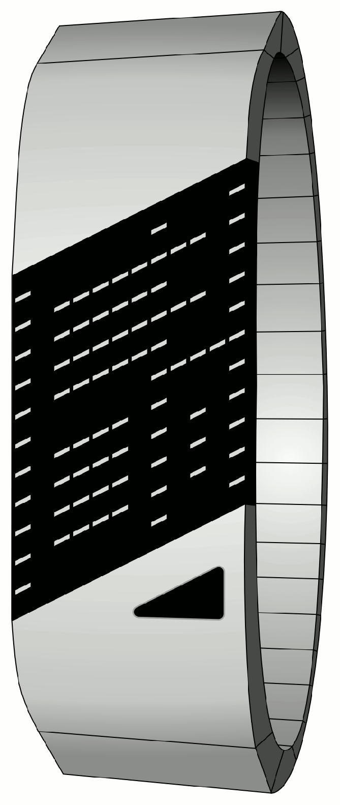 Another hit by Logan! I like the slim light gaps ( I almost wrote LEDs but it is LCD void 😀 ) because they look stylish, the negative display because it is a good balance between strange looking and being readable, and I like the 30° angle because it gives the watch a certain dynamic. The touch pad is good – a thick button would disturb the futuristic style of this watch. 12h/24h mode is good. Animation as well. Additional display functionality is wise 🙂 Cool thing Logan!