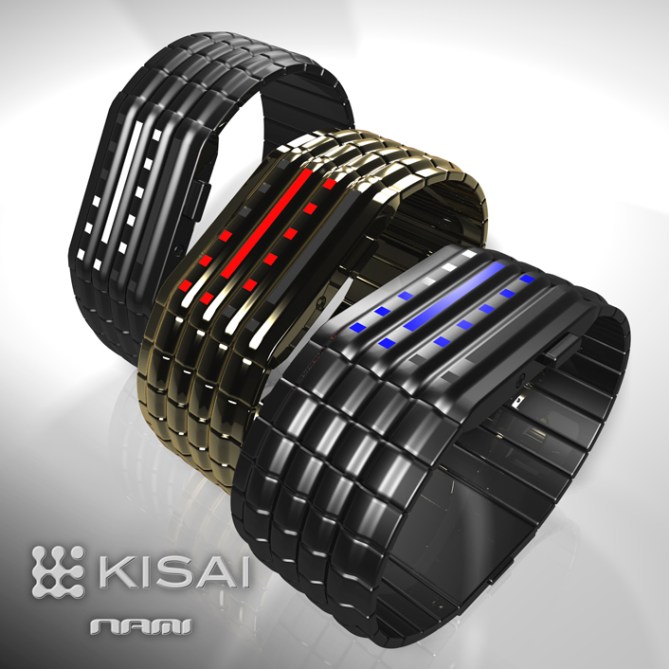 2. Hmmm fashionable! I like the waves. They waves are cool and their continuation into the straps is stylish. Maybe round LEDs would look even better because of the organic geometry. Gold-red for me 😀
