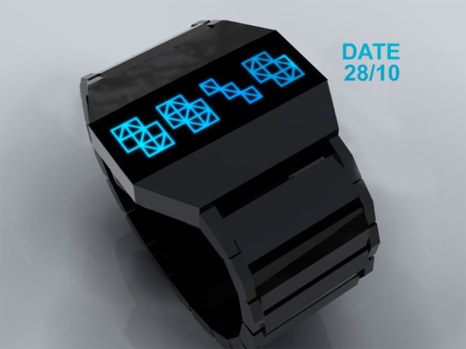 The geometry font used to tell the time is already awesome, but I,M,H,O, the arrangement can be made more creatively. I think this watch design is for ladies.