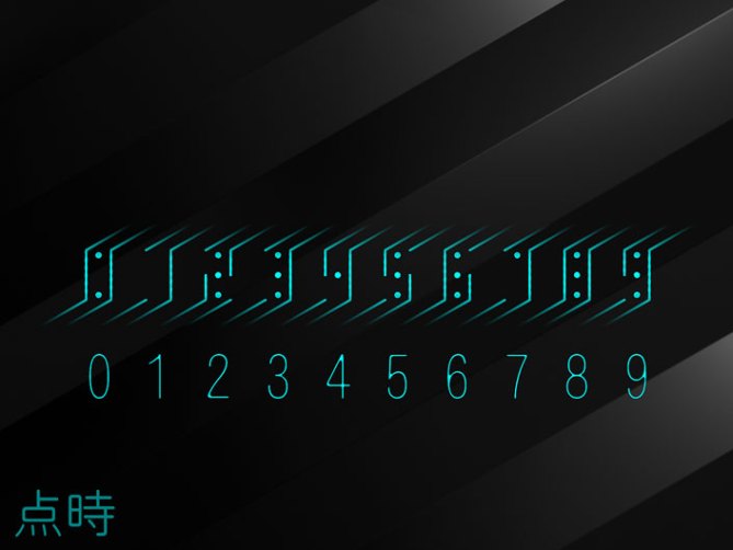 Heather & Sam say: Tenji (点時) is Japanese and can be translated to “dotted time”. The basic idea is using classic digits and replacing each horizontal line segment by a dot. Sam and Heather had a collaboration before and after sharing some thoughts about the basic idea, another collaboration was born.