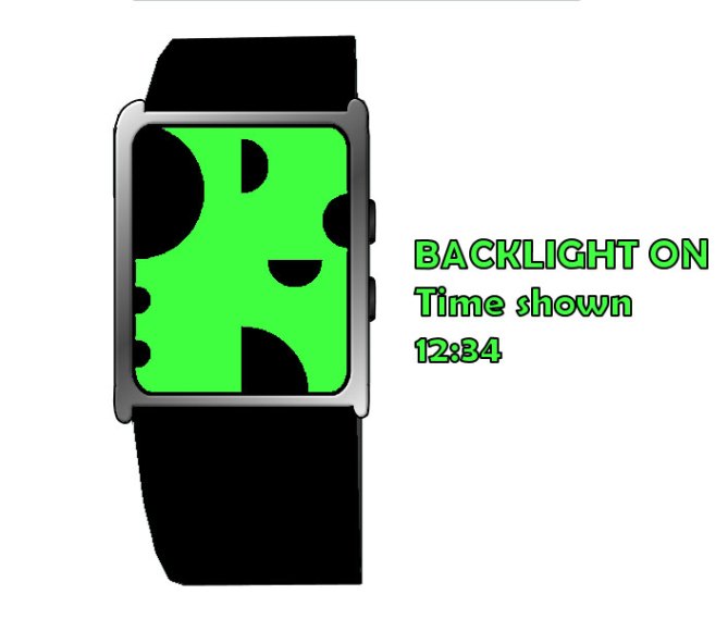From a technical standing, this watch would most likely need to be an LCD matrix of dots. It would have more of a pixelated graphics look in that case, rather than the solid shapes seen in the images.
