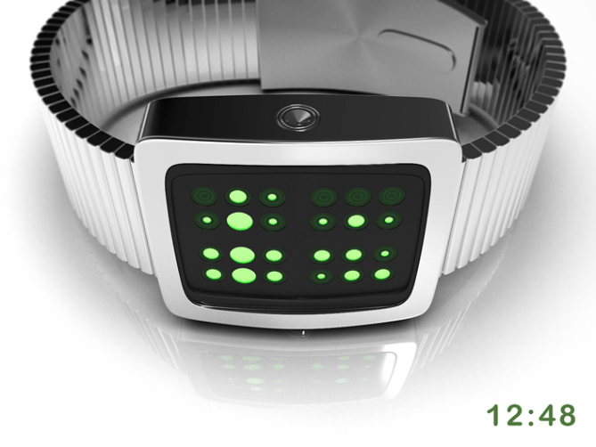 6. Genius, Amazing concept and design. I would but this one in a second. Crazy how once you train your brain on the Density of the circles the numbers just stand out perfectly. This looks like something, Steven Hawking, or Einstein, or some other mathematical Genius would design. It would be a shame if this one was not developed, I think the impact to make oit great would be to make it with E-ink for the circles for very sharp crisp look, or an LCD screen, so that colors could be incorporated. The circled need to be bright and Bold… Thumbs up to the person who submitted this design….