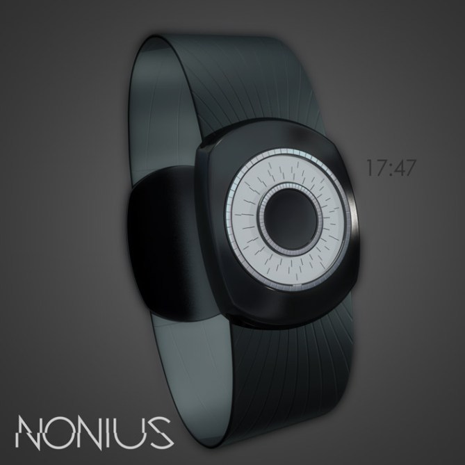 Anders says: This concept is something of a reworking of Vernier, an old submission of mine. The peculiarities of the vernier or nonius scale caught my attention once again. I wanted to (for once) design a watch as simple as possible around the display, and this is the result.