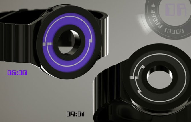 DR is an always on LCD watch design with a geeky donut shape that tells time in spiraling HH:MM digit steps!(see the picture for visual example).