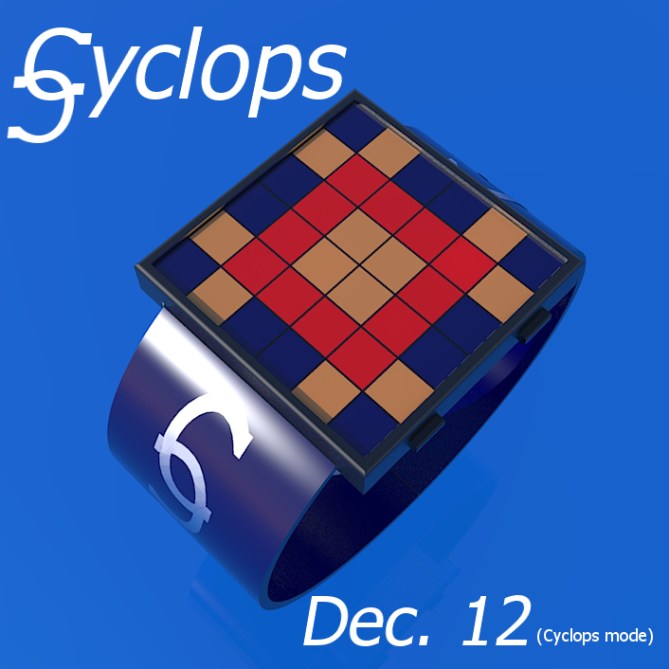 “Cyclops” is a revamp of a previous design submission – the new design uses a square interface instead of a round one.  Dietrich says: The original idea came to me when I was looking at designs on the Tokyoflash website and thinking that many of them are based on “codes” of some sort. Then I hit upon the idea of colour codes.