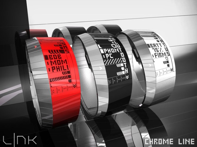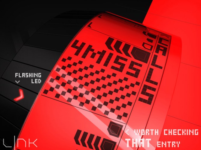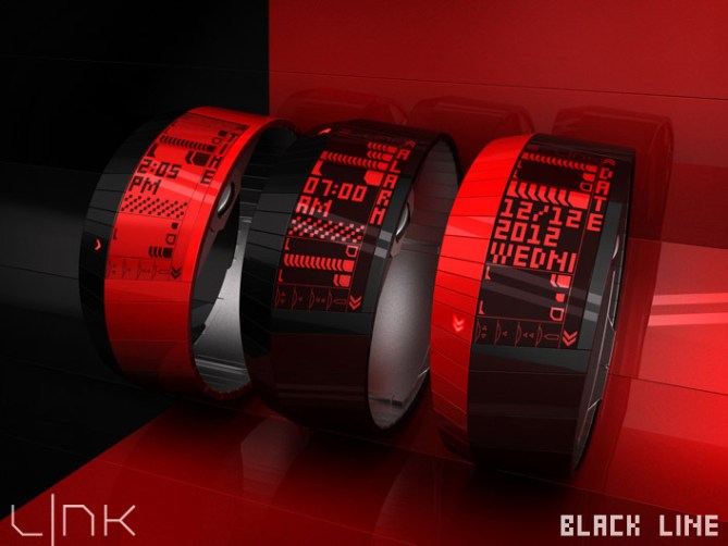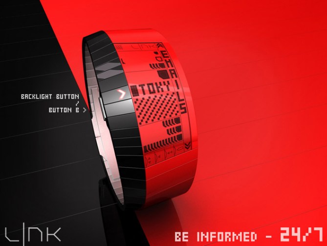 Sam says: There are two trends that inspired me to make the concept for L|NK. Tokyoflash once commented this on one of my designs and pointed towards an exciting future: “…it would work well in e-paper. There is a monochrome variety (e.g.: black/red, black/blue, black/pink) which we are working hard to develop into watches. It can’t come soon enough as far as we are concerned as it will really open up possibilities.” Watches that are connected to your phone or computer, are becoming more and more popular so I gave another smartwatch a chance.