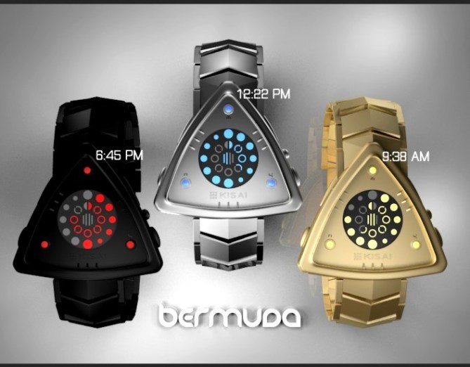 Colby says: With inspiration from the intrigue of The Bermuda Triangle and crop circles, coupled with the classic feel of 1960-1980’s sci-fi movies, the ‘Bermuda’ was born. My underlying principle was to use an unconventional watch shape, and include a one-of-a-kind function.