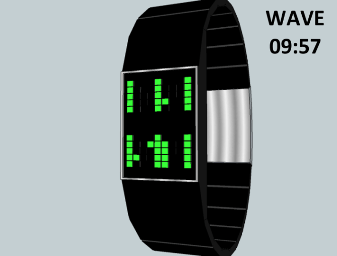 Heather says: I was actually inspired when I tried to read a watch display concept by Lloyd from Australia. I was reading it incorrectly at first, looking for digits that weren’t there to find. But then I thought, that would work. So I developed this LED concept with animation that is basically an LED version of Kisai Stencil. Because the only LEDs necessary create a somewhat wave-like layout, I decided to give it a wave-like animation and entitle it WAVE. The animation can be set to automatically turn on at various intervals.