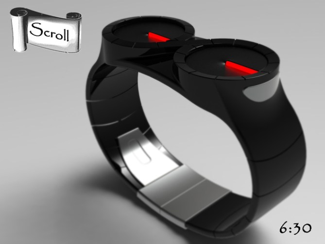 Peter says: I have made it sleeker and edgier than the original. I have also connected the two dials to make it look more scroll like and added markers to make time reading easier.