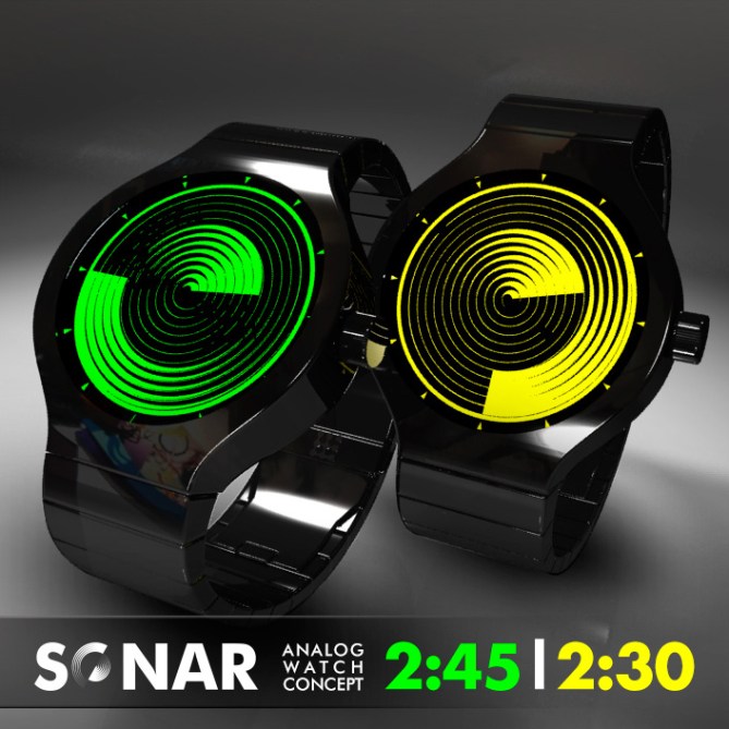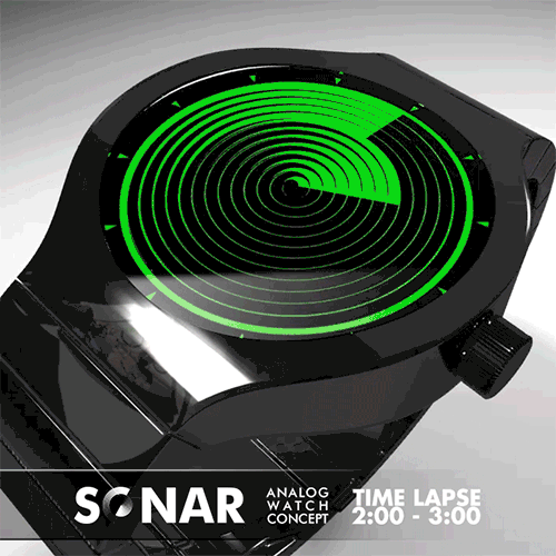 Sonar analog watch creates a bold radar effect