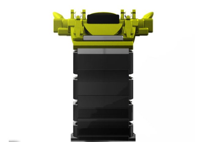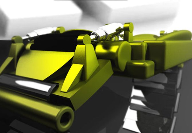 Joel says: Inspired by the suspension on race vehicles.  The colors were inspired by green fire engines and white heat.