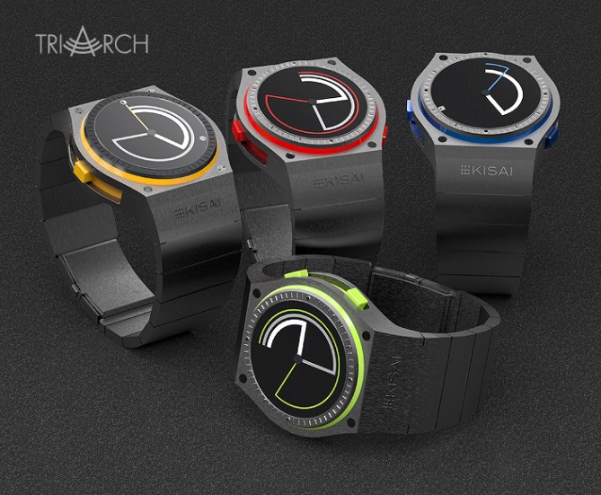 Jose says: Some time ago, reviewing old papers, I found some old pictures of my technical drawing studies, one of them contained three arcs of a circle, and it has inspired the TRIARCH concept watch.TRIARCH, takes the old theme of analog watches with large central seconds hand. The operation is the same, only the hands that showing hours, minutes or seconds, are digital, and when they move, they leave a trail or solid line behind them, the color will vary according kind of display you will choose for the development (LCD, TFT, etc).