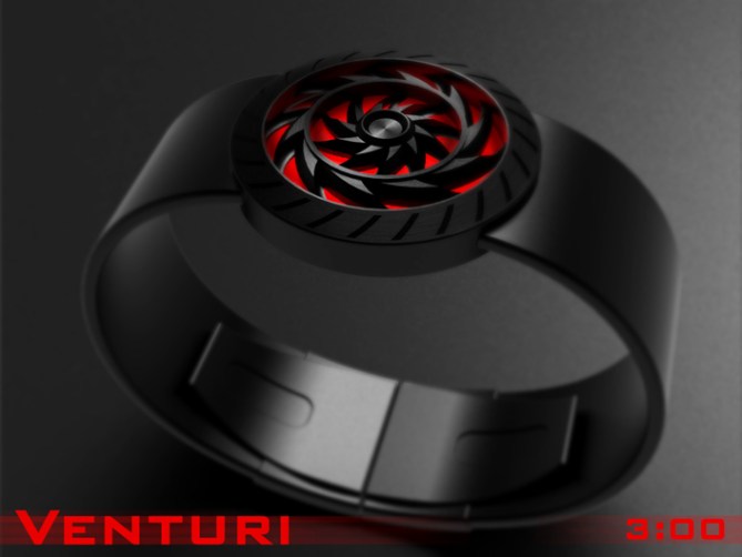 Peter says: This is “Venturi” which I suppose could be described as an analogue equivalent to “Blade”. It certainly shares some inspiration imagery but the time telling is much more conventional.