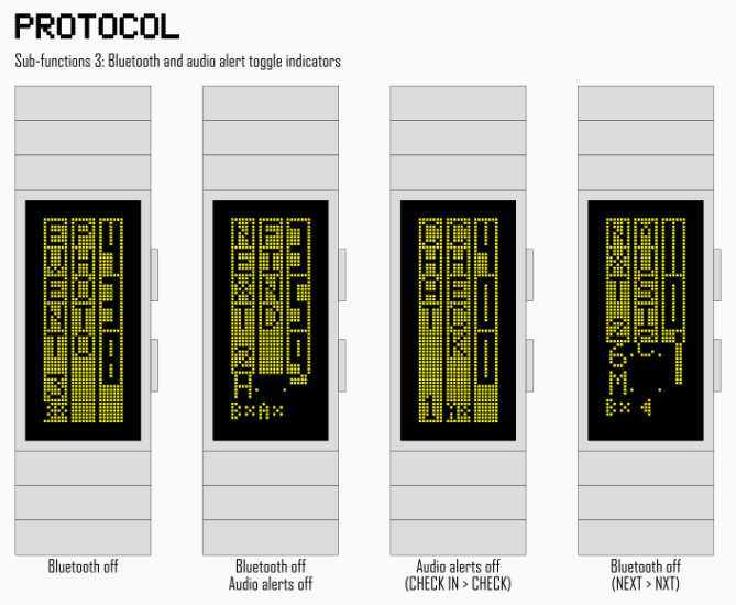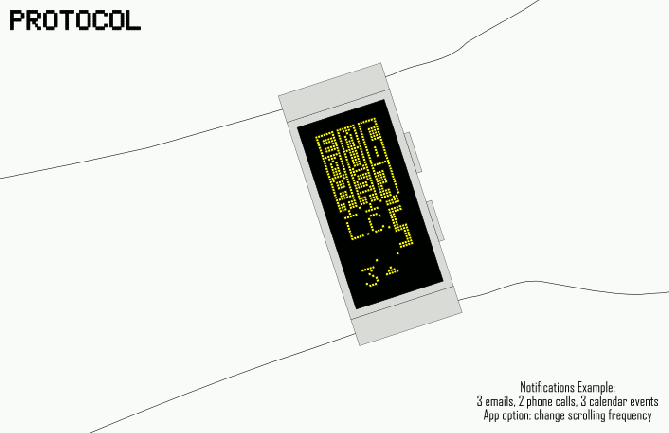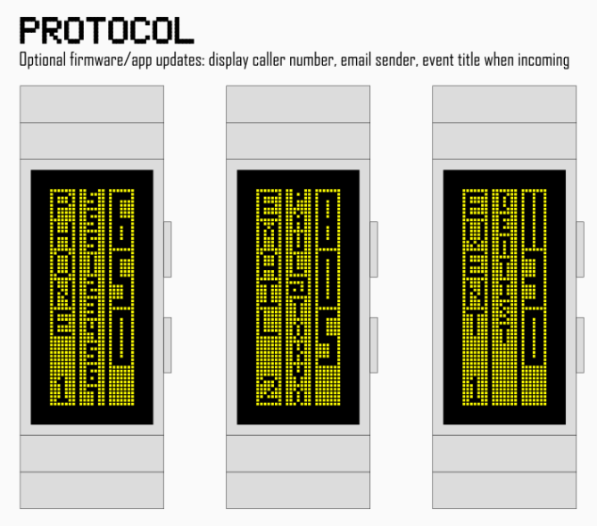 Because Tokyoflash might update the app in the future with additional functionality, I have proposed in image 14 how additional information (e.g., caller’s number, email sender, event title) could be displayed on the watch. With a firmware/app update, the watch will be somewhat futureproof.