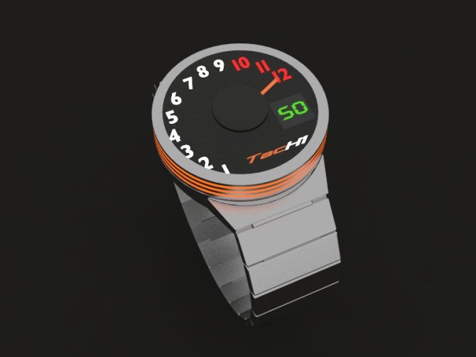 A Tachometer…. is very simple, it has to press the button that is in the center of the screen as if the clock is off you can not see inside and even less time. So pressing the button for a needle in the clock lights like the numbers and the rings around the clock, the needle goes from 0 to 12 as RPM’s and then stops at the current time, as the internal display gives min x 5, individual rings give 4 individual minutes depending on the time.