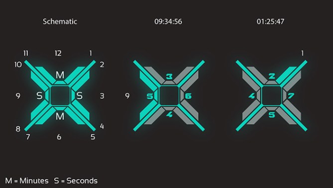 I tried to keep the engineering side of the watch simple. It uses current technologies such as an accelerometer and either an LCD or LED Display depending on manufacture. The time is a mixture of analogue and digital. Each section of the LED Display points to a numerical value of time 1-12. The minutes are read top to bottom and the seconds are viewed left to right with central pointer showing Northern direction.
