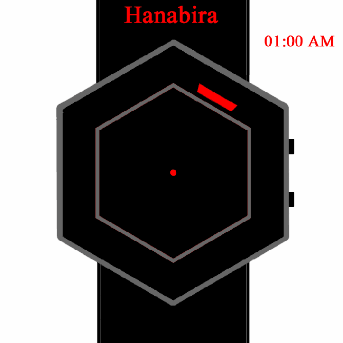 Robert says: Hanabira is an LCD watch concept. I wanted to create a new type screen with a really new type minute hand. The minute hand is virtual, but its end draws six curves in every hour, and these curves together will be a six-petal flower.
