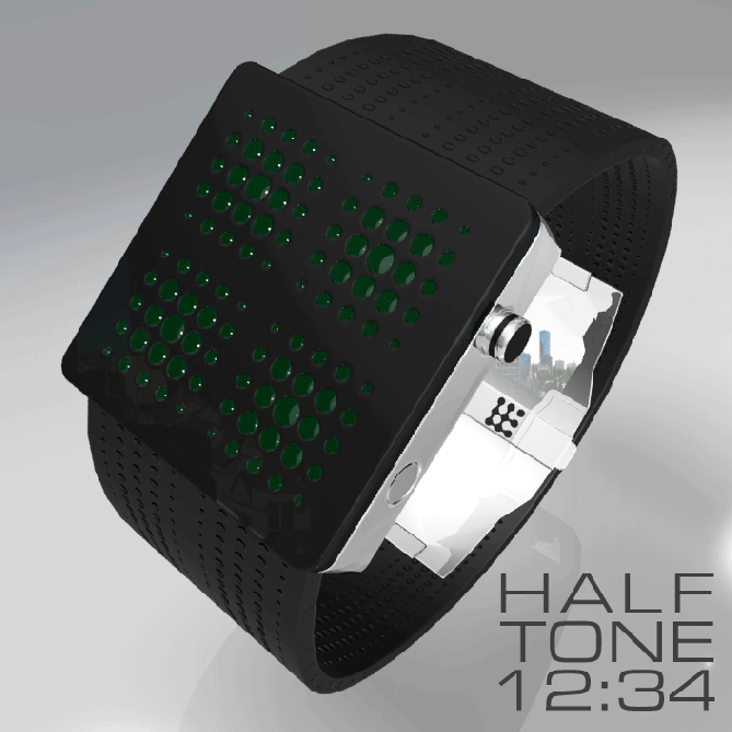 Thanks for the new submission Laszlo. An interesting digital watch and I can envisage a few ways it could be made. Possibly like the R75 design where holes are drilled with LEDs behind or like the 1000100101 watch. It is quite similar to the R75 in that it uses digits to show the time. I wonder if the size of the dots in this design makes it unique enough. I can certainly imagine lots of cool LED animations that would make the watch stand out.