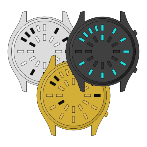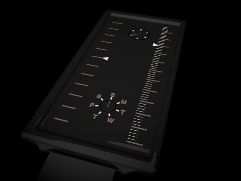 Logan says: Space Engine is a subtle geometry for the 12-5-9 method of telling the time. I wanted to see how close to a traditional watch layout you could use with 12-5-9, to make it as easy to read as possible.
