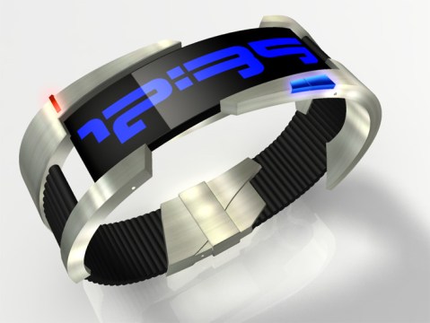This watch design is made of a hollow case with a light tube surrounded by a chrome ring and attached to a glossy plastic case and strap. The light tube is interrupted by a single and a double line, which are the minute and the hour hands of the watch. Continue reading