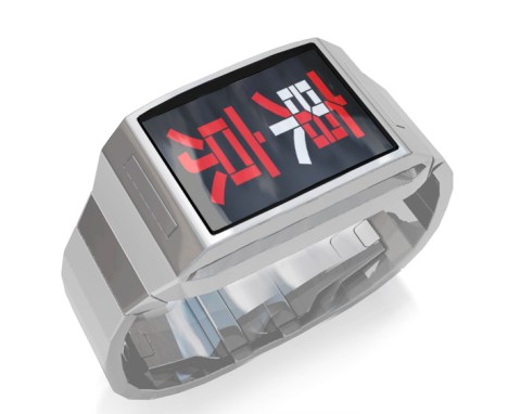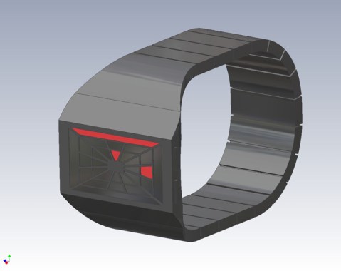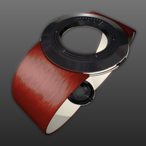 Time is told by three rings, the middle one a stationary reference ring with six marks lit by hidden red LEDs to match the wrist band color. The inner ring tells the hours with similar marks lit by white LEDs, and the outer ring tells the minutes, also in white LEDs. Continue reading →