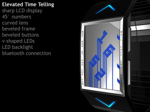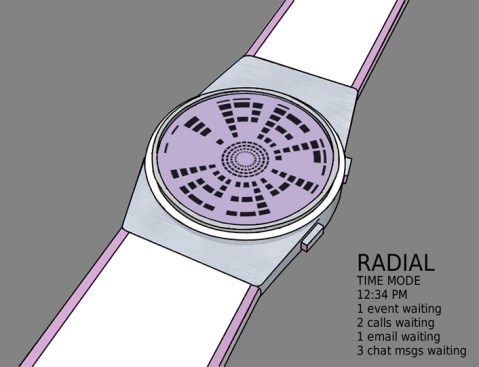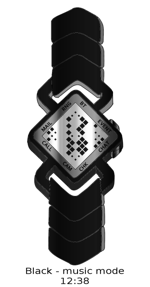 This smart watch design from Heather features all the convenient ‘smart’ functions such as; play music, message notifications, check-in, control phone camera (for selfies 😉 ) but with a more traditional & tasteful case design so it doesn’t look too out of place during your daily life. The primary idea is designed for women & the display compliments the jewellery feeling of a ladies watch – but there is a mens option too featuring a more masculine case & strap. It is an LCD watch & has regular digits with a twist.