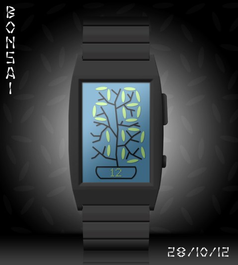 Lloyd says: I thought it would be kind of cool to use a bonsai tree for a watch display and this LCD concept watch design called “Bonsai” is the result.