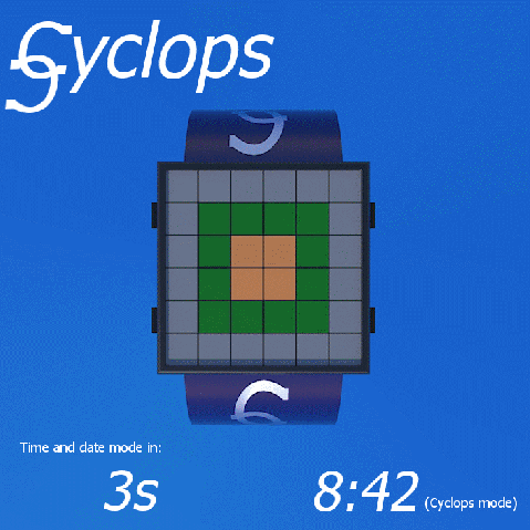 “Cyclops” is a revamp of a previous design submission – the new design uses a square interface instead of a round one. Dietrich says: The original idea came to me when I was looking at designs on the Tokyoflash website and thinking that many of them are based on “codes” of some sort. Then I hit upon the idea of colour codes.