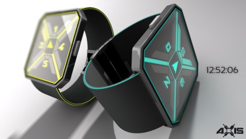 Lewis says: Axis came from using my 3D package. I wanted to incorporate the form of the x, y and z into a watch and began playing with art styles. The idea to incorporate a compass came naturally with the idea of navigating 3D space.