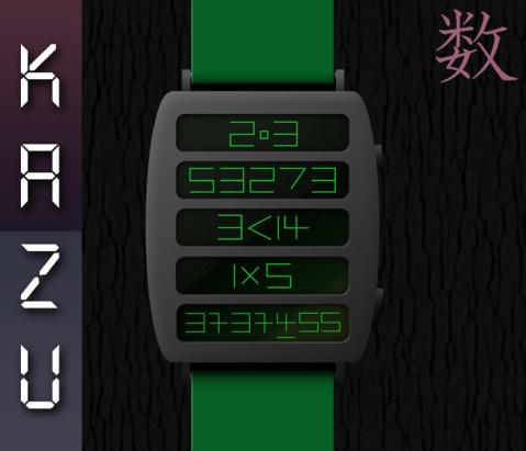 Lloyd says: This concept watch design is called “Kazu” after the Japanese word meaning ‘numbers’. I thought it would be fun to create a watch that uses the letters that make up the numbers 0 to 9 instead of the digits themselves and present them in a puzzling way.