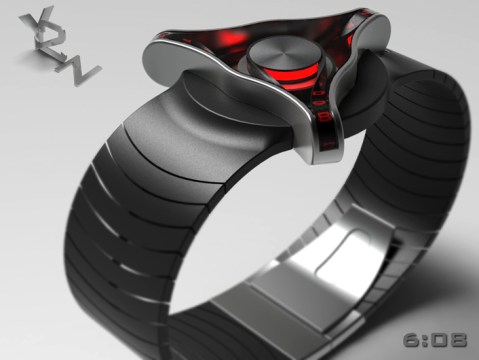 The LED’s orbit around the center of the watch forming the time in an digital way. The numbers bend to the center forming a relative simple way to read the time.