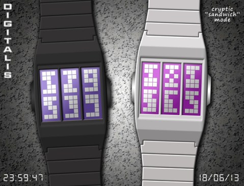 Lloyd says: “Digitalis” is an LCD concept watch design with 2 very different cryptic modes that display the time and date in a way that is both enigmatic yet easy to understand.
