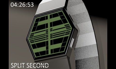 Heather says: My brother thought up the phrase “SPLIT SECOND”, and this concept was born. I thought, maybe I can make a display that is mostly seconds, but split them in half so there is constant movement on a large portion of the display. Then I made the hours and minutes smaller and squeezed them in between the top and bottom of the seconds.