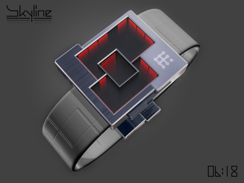 A subtle smart watch design that uses a circular display matrix to display the time & simple text messages & notification icons. The watch informs you of new emails, social chat (such as Skype or Facebook) as well as remaining you of calendar events & missed phone calls. You can also control your music while you are jogging by skipping tracks or pausing etc. The time is displayed in the bottom half of the watch face as regular digits.